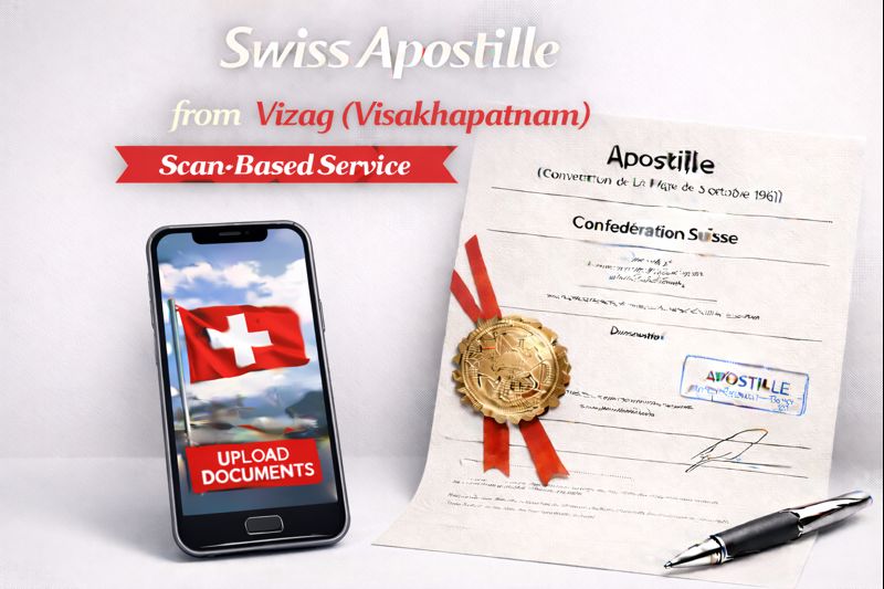 Our scan-based Swiss apostille service allows clients in Vizag to complete the entire workflow remotely — without international travel, embassy visits or complicated paperwork.
