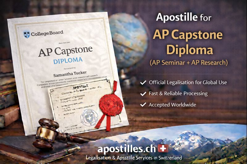 Apostilles.ch offers fast and compliant legalisation for AP Capstone credentials issued or certified in Switzerland, including: