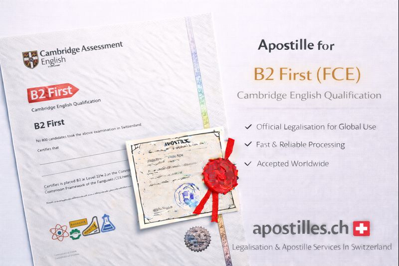 Apostilles.ch provides fast, reliable apostille services for B2 First (FCE) certificates issued or notarised in Switzerland, including: