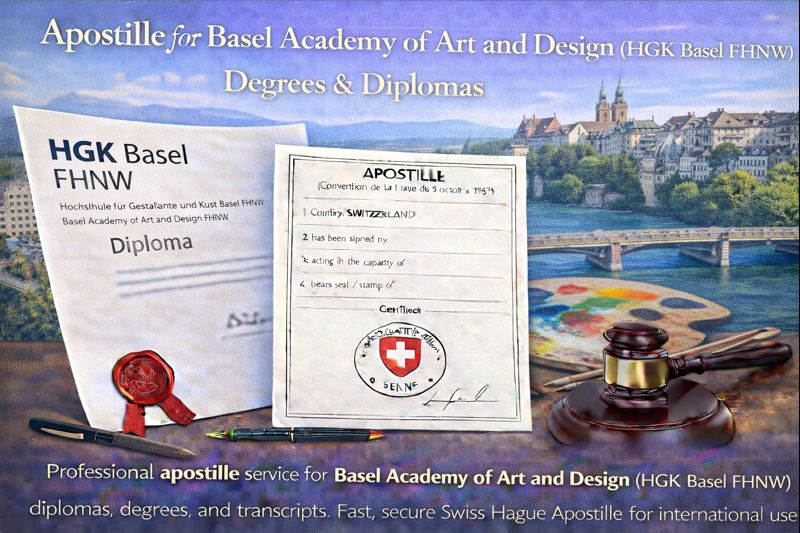 The Basel Academy of Art and Design, part of the University of Applied Sciences and Arts Northwestern Switzerland (FHNW), is one of Switzerland’s most renowned institutions for art, design, architecture, visual communication, industrial design, digital arts, and contemporary creative research. HGK Basel graduates frequently pursue international careers, exhibitions, residencies, postgraduate studies, and academic appointments abroad, making a Swiss apostille a common requirement.