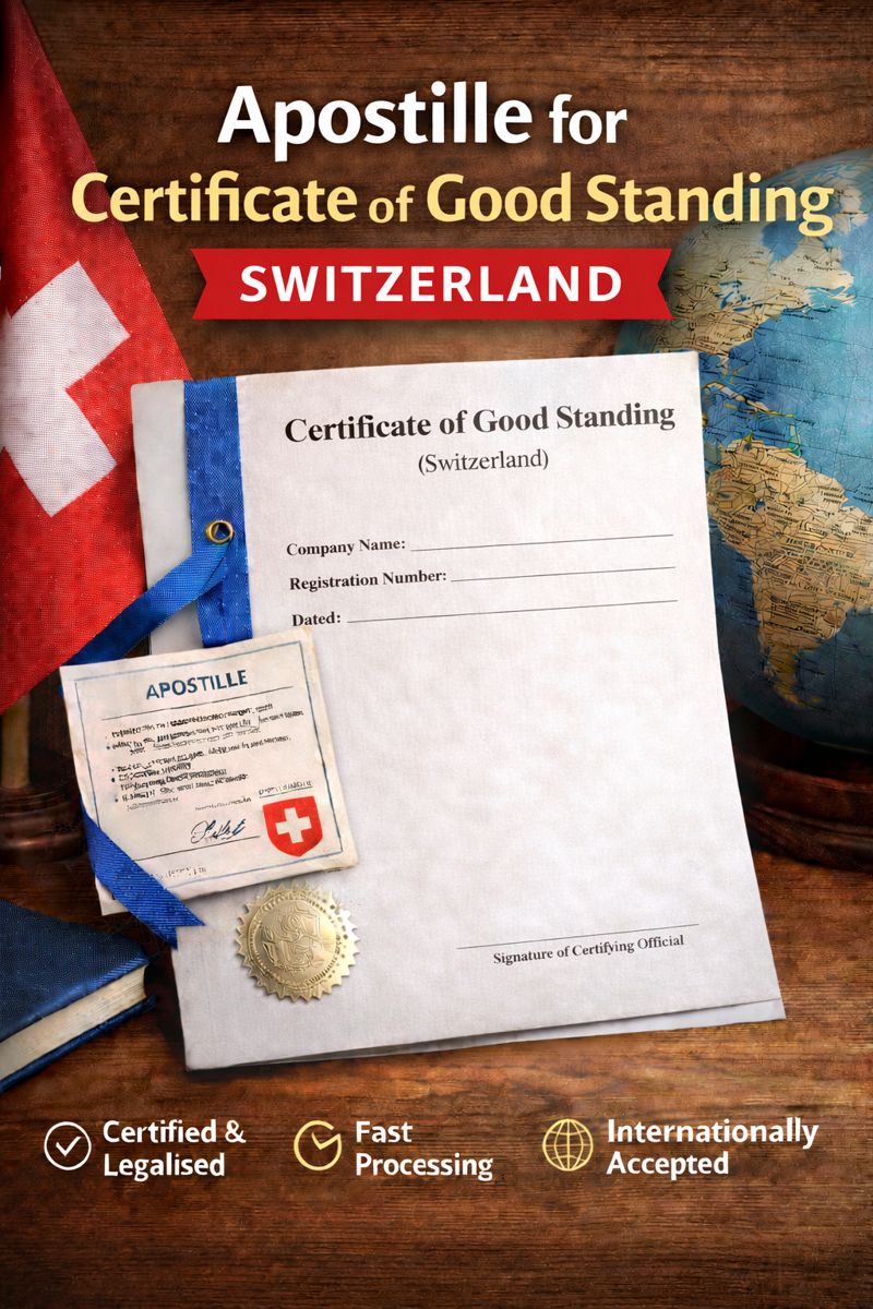 We provide professional apostille services for Certificates of Good Standing issued in Switzerland, ensuring your company’s legal status is officially recognised abroad.