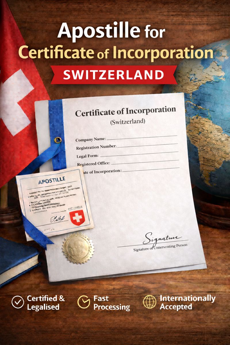 When a Certificate of Incorporation issued in Switzerland is intended for use outside Switzerland, it must usually be authenticated with an apostille in order to be accepted by foreign authorities and institutions.