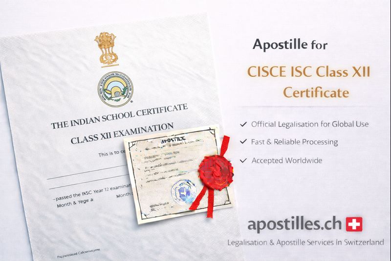 Apostilles.ch provides complete apostille services for CISCE ISC Class XII documentation issued or certified in Switzerland, including: