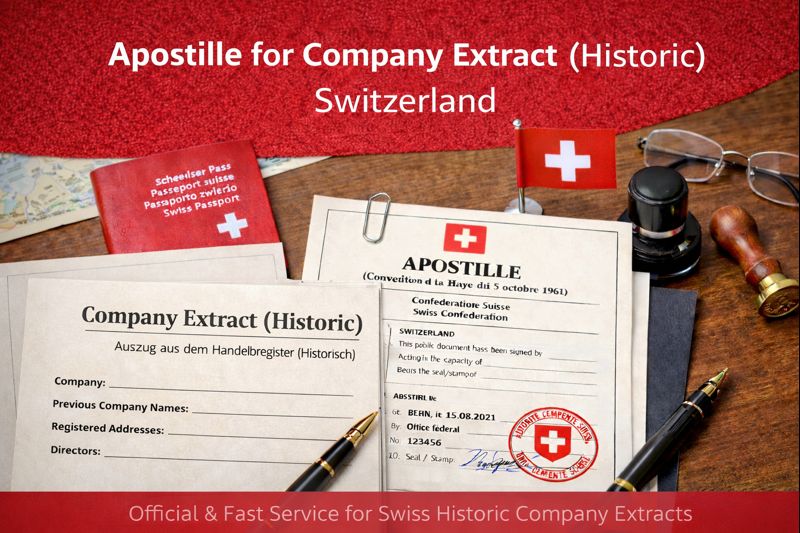 We provide reliable apostille services for Swiss historic company extracts, ensuring official recognition of corporate history documents abroad.