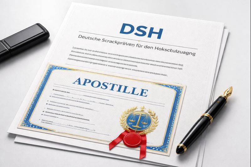 We provide a fast and reliable apostille service for DSH certificates required for university admission abroad. Ensure your language qualification is officially recognized without delays or complications.