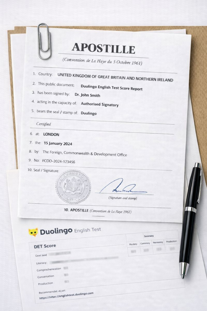 An Apostille for Duolingo English Test officially legalises your English proficiency certificate for international recognition by universities and authorities.
