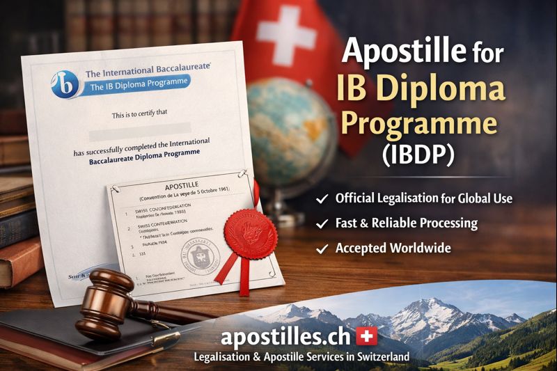Need an apostille for your IB Diploma Programme (IBDP)? We assist with fast, reliable legalization of your IB diploma in Switzerland, so it becomes internationally valid for universities, employers, and authorities abroad. Apostilles.ch handles the complete process, including document verification and submission to the official Swiss authorities. Perfect for students studying overseas, applying for work, or immigration procedures. Fast turnaround and expert customer care.