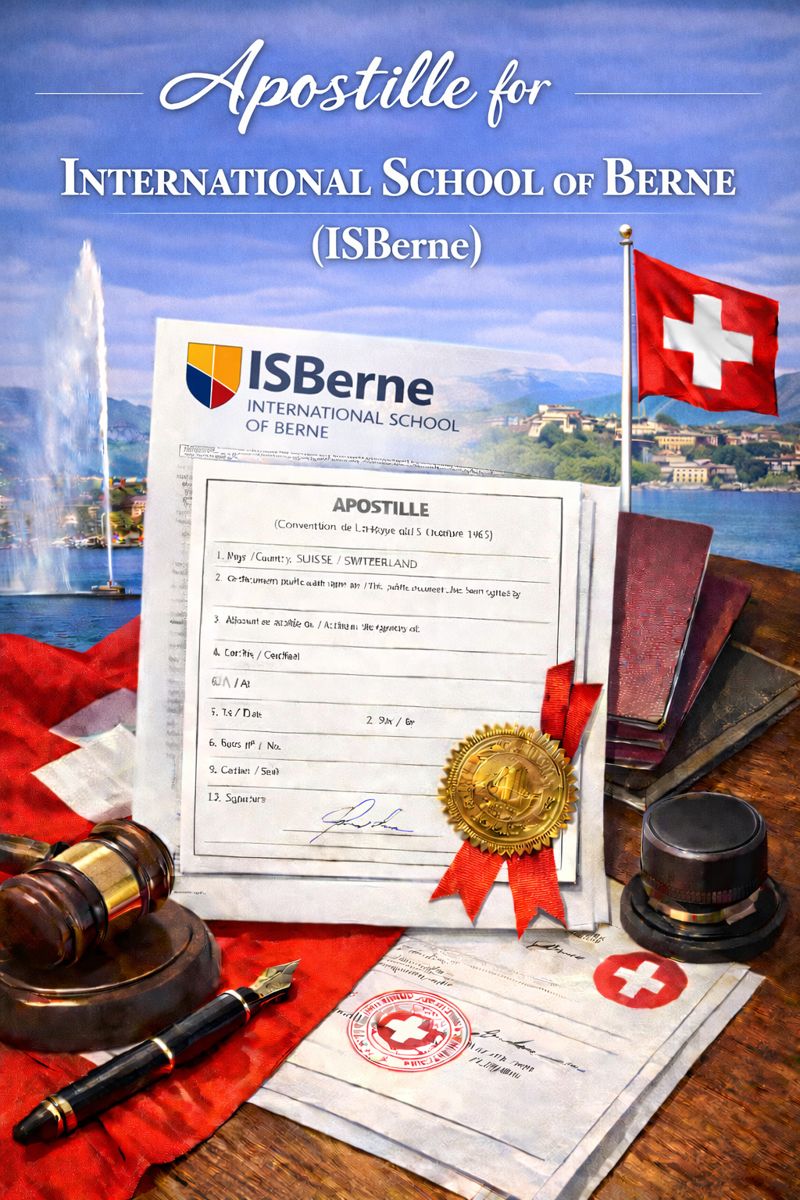 International School of Berne is a well-established international school serving the diplomatic, expatriate, and local community in Switzerland’s capital region. As an IB World School, ISBerne issues academic documents that are frequently required for international purposes. These documents may include enrollment confirmations, academic transcripts, school certificates, attendance letters, recommendation letters, or other official records issued by the school. When such documents are submitted abroad for university applications, school transfers, visa or residency procedures, or family relocation, an apostille is often mandatory.
