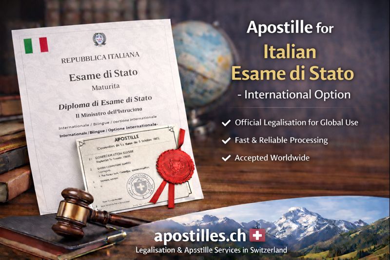 Apostilles.ch specialises in apostille legalisation for the Esame di Stato — including: