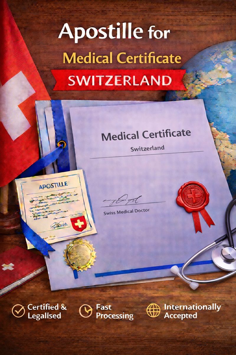 When a Medical Certificate issued in Switzerland is intended for use outside Switzerland, it often must be authenticated with an apostille to be accepted by foreign authorities, embassies, employers, insurers, or institutions.