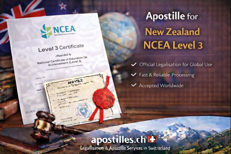 Apostilles.ch provides fast, compliant apostille services for New Zealand NCEA Level 3 certificates issued or certified in Switzerland, including: