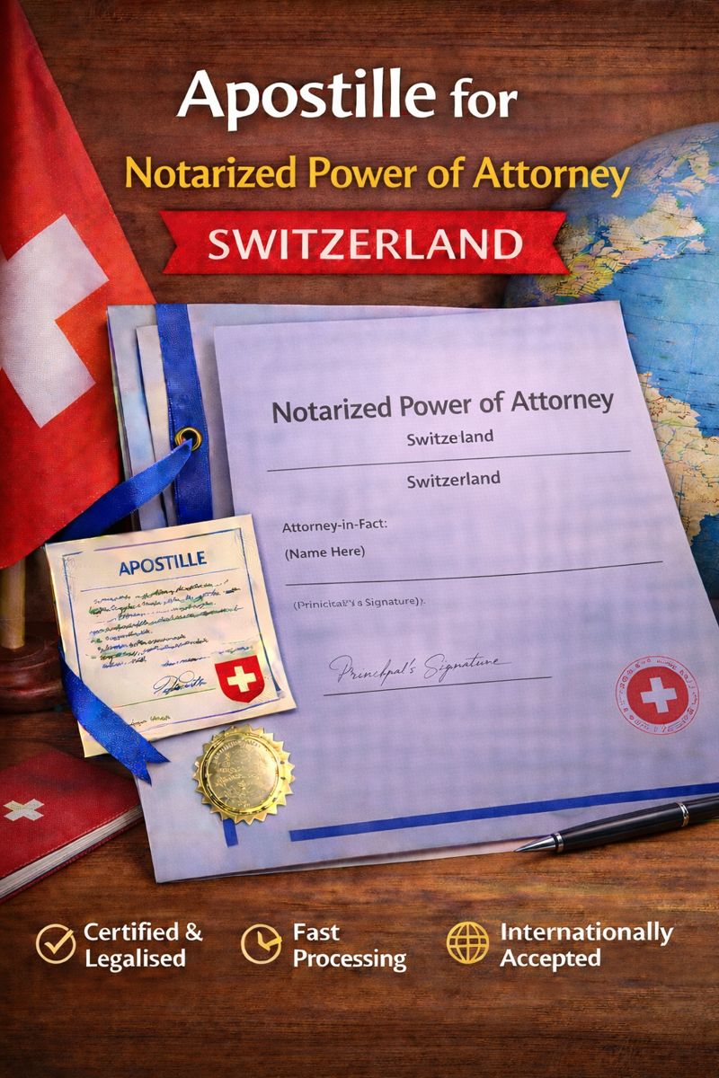 When a Notarized Power of Attorney issued in Switzerland is intended for use outside Switzerland, it usually must be authenticated with an apostille to be accepted by foreign authorities, courts, banks, or institutions.