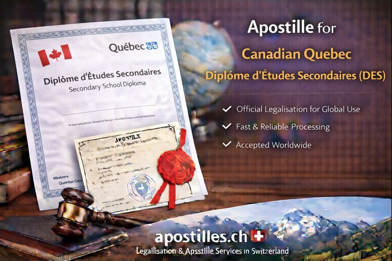 Apostilles.ch provides complete apostille services for Quebec DES documents issued or certified in Switzerland, including:
