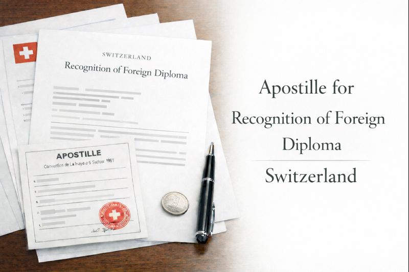 We provide professional apostille services for Recognition of Foreign Diploma documents issued in Switzerland, ensuring your qualification recognition is legally accepted abroad.