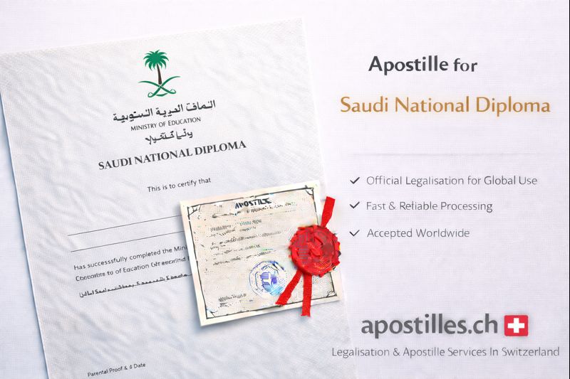 Apostilles.ch provides comprehensive apostille support for Saudi National Diplomas issued or certified in Switzerland, including: