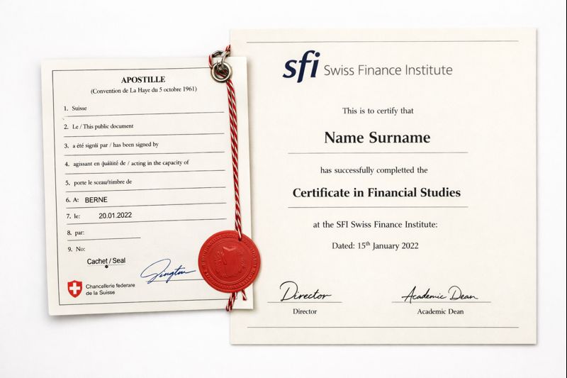 Professional apostille service for SFI Swiss Finance Institute diplomas, certificates, and academic confirmations. Fast, secure Swiss Hague Apostille for international recognition.