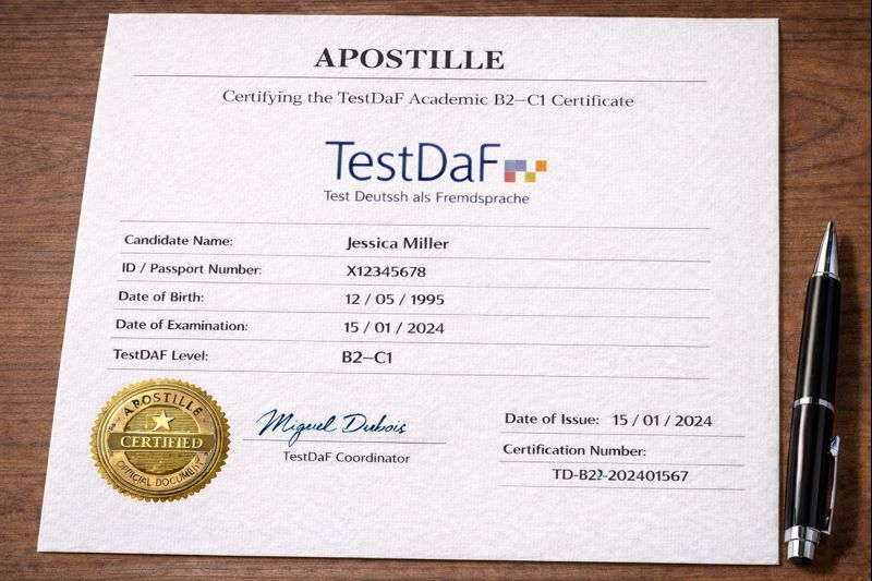 The Apostille for TestDaF Academic B2–C1 is a required legal certification for individuals who need their TestDaF (Test Deutsch als Fremdsprache) certificate recognized internationally. TestDaF is widely used as proof of German language proficiency for academic purposes, particularly for admission to German and international universities. However, many institutions outside the issuing country require an apostille to confirm the authenticity of the certificate (Apostille for TestDaF Academic B2–C1).