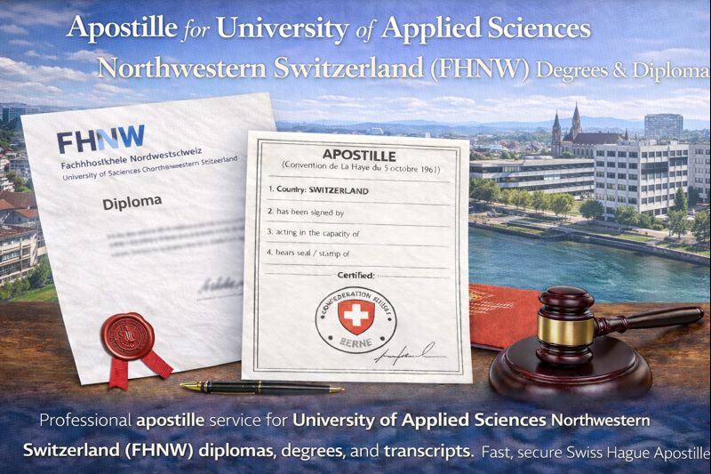 Professional apostille service for University of Applied Sciences Northwestern Switzerland (FHNW) diplomas, degrees, and transcripts. Fast, secure Swiss Hague Apostille for international use.