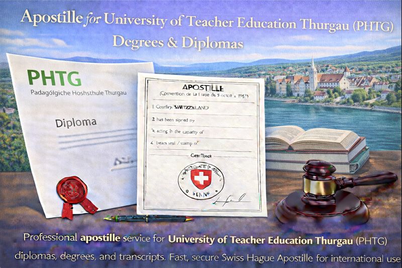 Obtaining an apostille for University of Teacher Education Thurgau (PHTG) documents is essential if you plan to use your Swiss teaching or education qualifications abroad. An apostille certifies the authenticity of official academic documents and ensures their legal recognition in countries that are members of the Hague Apostille Convention of 1961. Without an apostille, PHTG diplomas and transcripts may not be accepted by foreign education authorities, universities, employers, or government institutions.