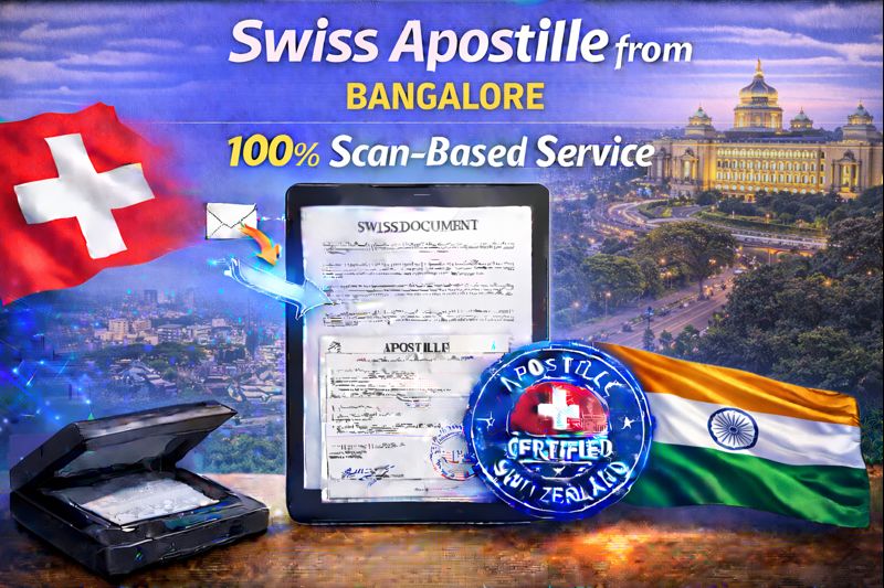 From Bangalore, obtain a valid Swiss apostille without sending original documents abroad. Email your scanned Swiss documents and our team completes the legalization—secure, fast, and fully compliant.