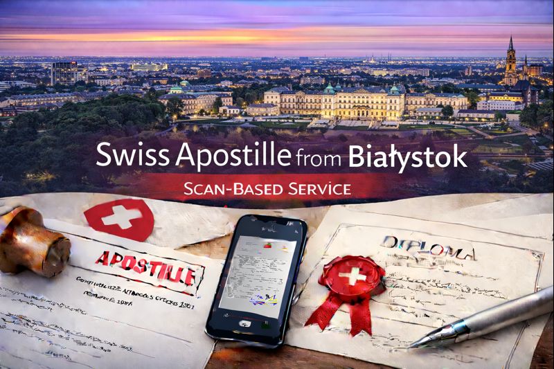 The Swiss Apostille from Białystok – Scan-Based Service offers residents, students, families, expatriates and businesses in Białystok a streamlined, fully remote and legally compliant way to authenticate Swiss-issued documents for international use. Apostilles.ch replaces old-fashioned bureaucracy and courier delays with a modern digital workflow — allowing clients to submit scans directly from Białystok while our team completes all apostille formalities in Switzerland.