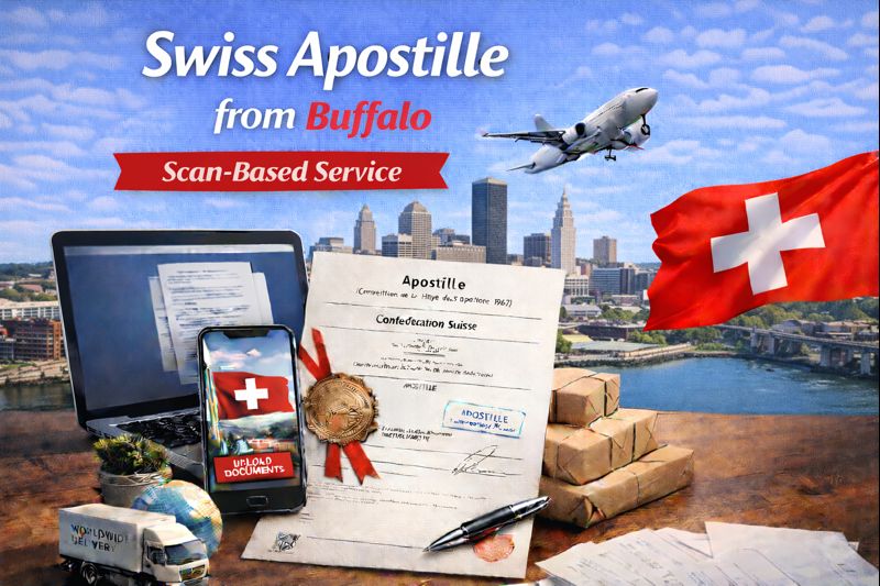 If you are based in Buffalo and need a Swiss apostille, the process often feels confusing and time-consuming — especially because Swiss documents must be authenticated within Switzerland before they are legally valid abroad. Government offices, international requirements, and strict document handling rules can make the process overwhelming. That’s where our streamlined scan-based service comes in.