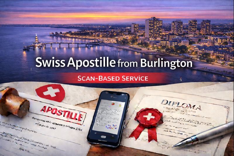The Swiss Apostille from Burlington – Scan-Based Service offers individuals, students, families, and businesses in Burlington a fast and secure solution for having their Swiss documents authenticated for international use. Apostilles.ch enables clients to complete the entire apostille process remotely using secure digital scans—eliminating the need to mail original documents overseas or navigate Swiss paperwork alone.