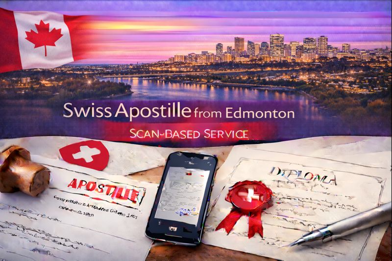 The Swiss Apostille from Edmonton – Scan-Based Service provides residents, expatriates, students, professionals, families, corporate teams and legal offices across Edmonton, Alberta, with a fast, secure and fully remote way to authenticate Swiss-issued documents for international use. Apostilles.ch eliminates the need for consular appointments or international mailing — Edmonton clients simply upload scans while all certification is completed in Switzerland by expert legalisation specialists.