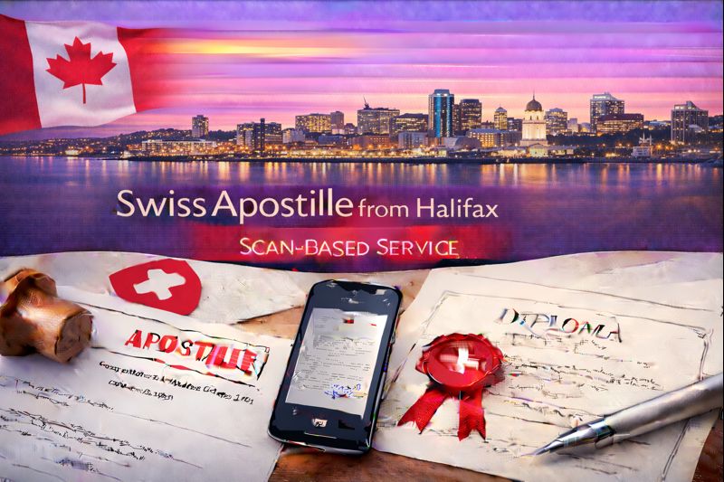 The Swiss Apostille from Halifax – Scan-Based Service offers residents, expatriates, students, families, legal professionals and internationally connected businesses in Halifax, Nova Scotia, a fast, reliable and fully remote solution for legalising Swiss-issued documents. Apostilles.ch removes the need for consular appointments or overseas mailing — Halifax clients upload secure scans while all apostille processing is completed in Switzerland by credentialed specialists.