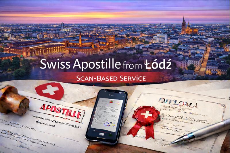 Swiss Apostille from Łódź made simple. Apostilles.ch authenticates Swiss documents remotely with secure scans — no consulate visits or international postage.