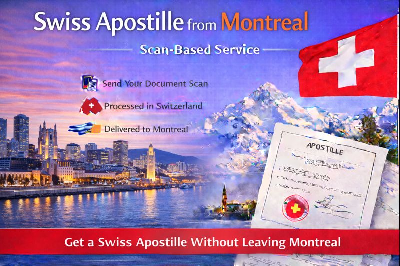 Get a Swiss apostille from Montreal without traveling to Switzerland. We handle the entire process remotely using a secure scan-based workflow.