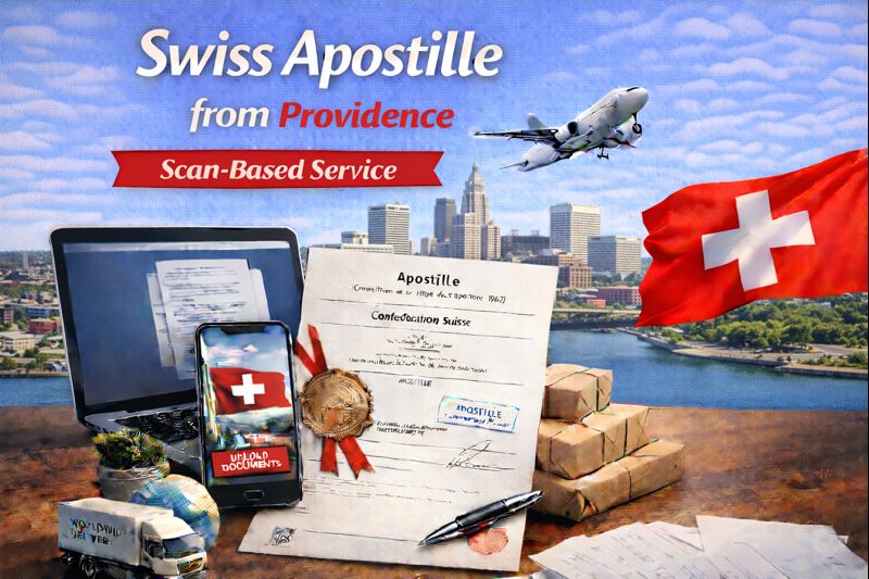 If you’re located in Providence and need a Swiss apostille, navigating the process alone can be confusing — especially because Swiss documents must be authenticated inside Switzerland before they are recognized abroad. Different authorities, multilayered rules, and international courier requirements make the process challenging without help. Our scan-based Swiss apostille service removes the complexity and handles everything on your behalf.