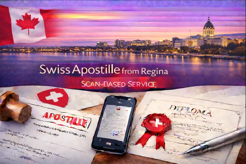 The Swiss Apostille from Regina – Scan-Based Service offers residents, expatriates, families, students, business professionals and legal teams across Regina and Southern Saskatchewan a fast, secure and fully digital solution to legalise Swiss-issued documents for international use. Apostilles.ch removes the need for in-person embassy visits or sending original documents abroad — Regina clients simply upload digital scans while certified Swiss specialists manage the full process in Switzerland.
