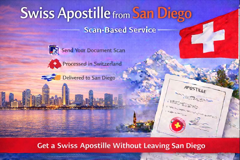 Get a Swiss apostille from San Diego without traveling to Switzerland. We handle the entire process remotely using a secure scan-based workflow.