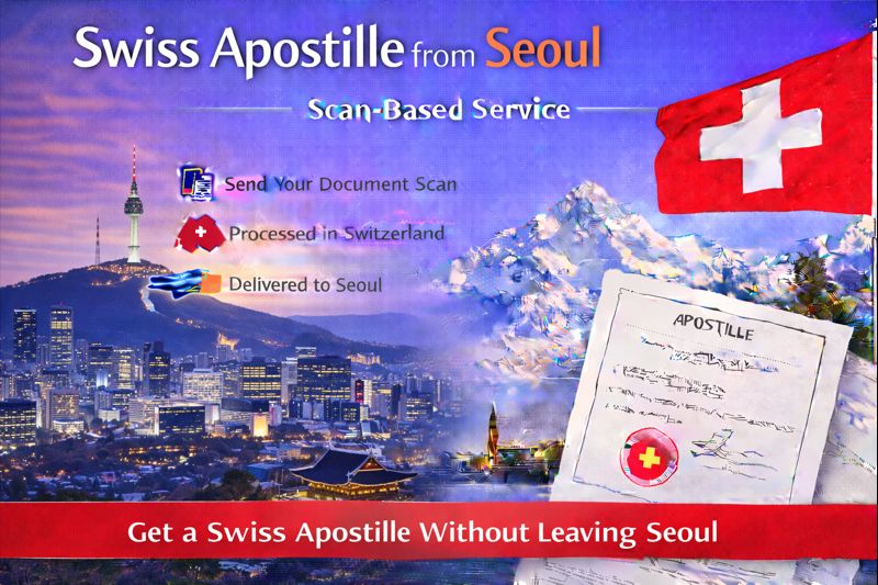 Get a Swiss apostille from Seoul without traveling to Switzerland. We handle the entire process remotely using a secure scan-based workflow.