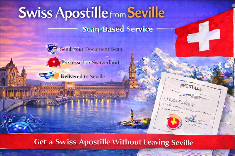 Get a Swiss apostille from Seville without traveling to Switzerland. We handle the entire process remotely using a secure scan-based workflow.