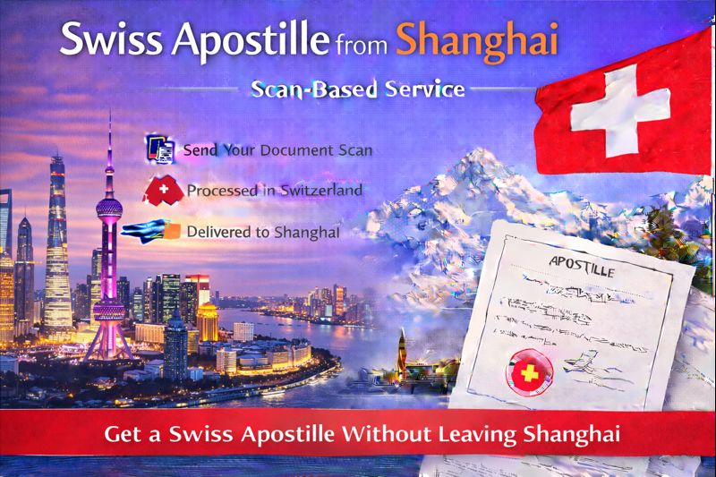 Get a Swiss apostille from Shanghai without traveling to Switzerland. We handle the entire process remotely using a secure scan-based workflow.