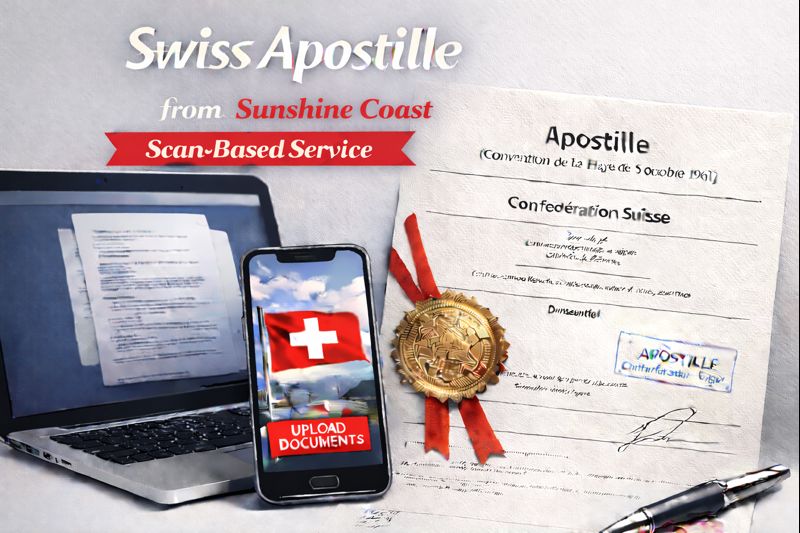 Swiss Apostille from Sunshine Coast – Scan-Based Service