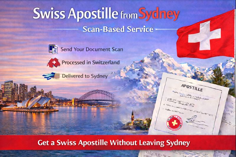 If you are located in Sydney and require a Swiss apostille, you can complete the entire process remotely without traveling to Switzerland. Our scan-based service allows you to obtain a Swiss-issued apostille efficiently, regardless of your location in Australia or the wider Asia-Pacific region.