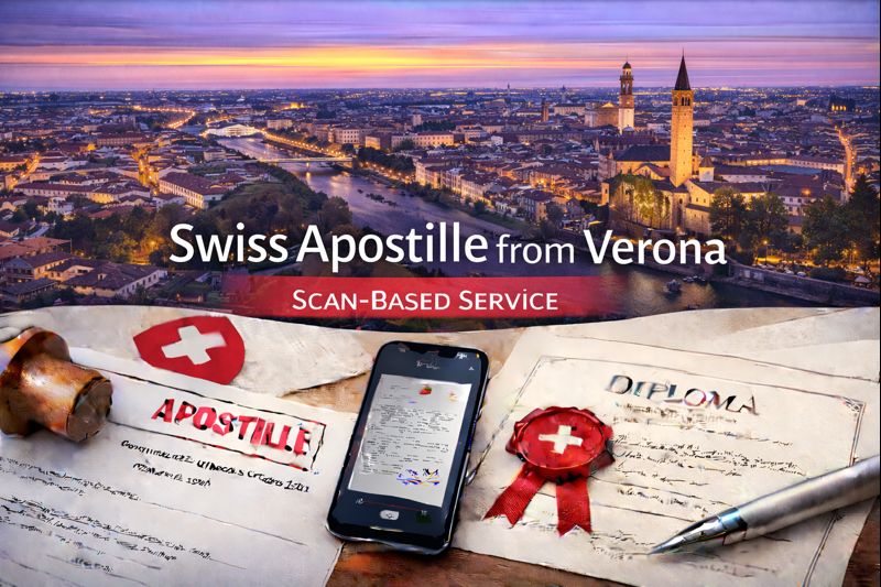 The Swiss Apostille from Verona – Scan-Based Service provides residents, families, students, businesses and legal professionals in Verona with a modern, streamlined way to authenticate Swiss-issued documents for international use. With Apostilles.ch, you can complete the apostille process entirely remotely using secure digital scans — eliminating the need to ship original documents overseas or navigate Swiss bureaucracy yourself.